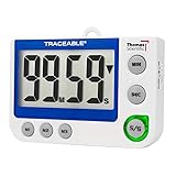- Traceable flashing LED alert big-digit alarm timer. Easy on the eyes: Massive, 1-inch-high display permits viewing from across the lab. Its microcomputer chip permits setting 3 countdown times into memory. Program the three most frequently used times and never set countdown times again. Use any countdown time from 99 minutes, 59 seconds to 1 second. When zero is reached, the timer starts counting up to show time elapsed since alarming. Unique visual indication when counting down, green light flashes every second once the countdown time reaches 10 seconds. Red light flashes when zero has been reached and the alarm is sounding. Adjustable alarm volume has three settings which allow setting the timer to a high decibel for noisy areas, low for quiet environments or off (muted) for silent only visual flashing LED operation. To assure accuracy an individually serial-numbered traceable certificate is provided from our ISO 17025 calibration laboratory accredited by A2LA. It indicates traceability to standards provided by NIST (national institute of standards and technology). Magnetic back allows timer to be placed on any metal surface such as incubators or water baths. Also has a flip-open easel for standing on the lab bench, a spring fastener for clipping to a notebook/clipboard, and an opening for a lanyard. Accuracy is 0.01 percent. Supplied with two AAA Alkaline batteries.