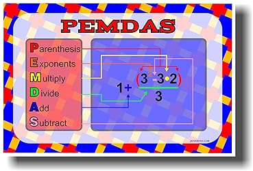 - PEMDAS - Parenthesis, Exponents, Multiply, Divide, Add & Subtract - Math Classroom Poster 12 inches x 18 inches - Perfect for Classrooms - Printed on High Quality Paper - Proudly Made in the U.S.A. PosterEnvy EXCLUSIVE! Fits the National Educational Curriculum Framework Standards for Math!