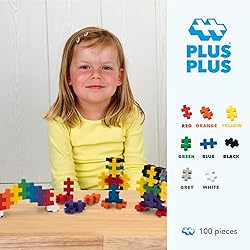 - Plus-Plus is a whole new class of construction toy! One simple shape contains endless possibilities and hours of fun. Each piece easily connects to the next and lets your imagination create colorful flat mosaics or work in 3-D to make more intricate builds. A perfect on-the-go STEM toy for your budding builder!This Plus-Plus BIG size is perfect for smaller hands or bigger ideas. Well-suited for preschool and early learning environments, this set brings endless fun to kids who are developing their motor skills and recoginzing colors, patterns and sorting —all while mixing play and creativity! This 100 piece set contains Basic Colors, including Red, Blue, Green, Yellow, Orange, Purple and more. Also includes an Idea Guide Booklet for building. Suggested for ages 18 months and up. BPA-free and phthalate-free. Designed and made in Denmark.