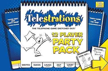 More books, more players, more laughs. Ages : 12+, 4-12 Players Over 2,000 words, 12 erasable sketch books, 12 dry erase markers, 12 clean-up cloths Perfect for bigger parties, family reunions or to entertain a crowd; LOL fun for everyone! Award Winning Party Game - great ice breaker No Drawing Skills Required; Stick figures & sense of humor welcome