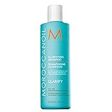 - Moroccanoil Clarifying Shampoo works to remove buildup—from hair products, chlorine, environmental impurities, hard water and mineral deposits—that can make hair limp, lifeless or greasy. This deep-cleansing formula lifts away daily buildup and impurities, while keratin, argan and avocado oils, lavender, chamomile and jojoba extracts provide nourishment. Hair is restored to a healthy balance with a weightless feel. Can be used twice monthly as part of a normal hair care regimen, or up to once a week for those who swim regularly, have hard water or use a lot of hair products. Fragranced with the signature Moroccanoil scent, an exotic blend of spicy amber aromas and sweet floral notes.