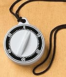 - Enjoy the convenience of a portable timer. This accurate timekeeper with neck cord lets you stay mobile while you monitor the minutes. Wear it to time your walks and for games and sports. Cooks can take this portable kitchen timer with them outdoors or to another room and avoid missing the stove timer. Easy to set and read. About 2 1/4" in diameter; tracks up to 60 minutes in 1-minute increments. In ABS with a magnetic timer back for fridge display; comes with nylon cord about 32"L.