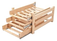 Award winning in-cabinet space saving wine storage system holds 18 bottles Hand-crafted in the U.S.A by career wood workers Solid maple wood construction; unstained natural finish with a clear satin lacquer Full length heavy-duty ball bearing slides provide smooth operation Easily installed or removed in minutes with a Philips-head screwdriver Robust 100 pound weight capacity per shelf Rack measurement when fully assembled: 22.25” long x 16.125” wide x 11” high