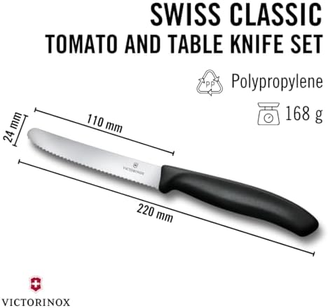 Victorinox 6.7833.6 Juego de Cuchillos Clásico Suizo para Tomate y Mesa para Uso Familiar Diario con Cuchilla Serrada en Negro, Juego de 6