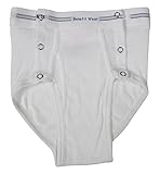 Cotton Knit Made in the USA or Imported Great for those with compromised mobility, dexterity issues, urinal users, catheter or incontinence issues. Snaps will be applied to side of brief from waistband to hem. This will allow it to open fully on either or both sides. Fly opening will remain the same as in regular briefs. White cotton knit.