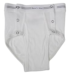 - The adaptive side snap briefs are designed to accommodate individuals with mobility issues, dexterity issues, urinal users, catheter or incontinence issues. Post surgical patients benefit from this feature as well as briefs can easily be changed without having to bend.They feature snaps on both sides of the brief, running from the waistband to the hem, allowing for easy opening and closing.The fly opening remains the same as in regular briefs.Snaps will be applied to both sides of brief from waistband to hem. This will allow it to open fully on either or both sides. Fly opening will remain the same as in regular briefs.These briefs are made from white cotton knit material for comfort and breathability.Please note that due to the added side closures, they may be slightly smaller than the actual size.Therefore, it is recommended to order one size larger than your usual size to ensure a proper fit.