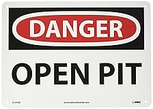Danger Sign: this signage warns the visitors and onlookers to keep away from the open pit and unknowingly fall into it. It is commonly used to prevent accidental falls into open holes or pits Text Visibility: the signage with simple and clear legend DANGER - OPEN PIT is bold and noticeable in busy working area and corridors; the text is legible from certain distance as well Material: the sign is made from Standard Aluminum with baked-on enamel on both sides for both side printing. Non-corrosive and weatherproof sign has radius corners and pre-drilled mounting holes. It offers indoor/outdoor applications on a wall or fence Specifications: the rectangular and 0.040 in. thick aluminum danger sign with bold black/white text on white/red base measures 14 in. length by 10 in. height Sign Muscle: this OSHA danger sign has NMC Sign Muscle coating that protects the text and image against fading, scratches, scuffing, and graffiti. The UV-cured, clear coating creates a strong bond and boosts the color and clarity