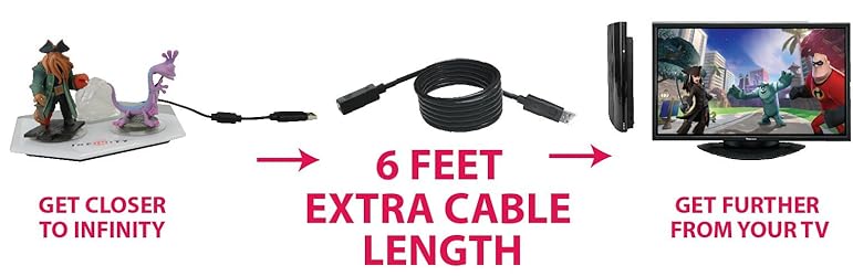 - Play at a comfortable distance from your TV with the 6 feet USB Extension Cable for Disney Infinity. The must-have accessory doubles play-length of the USB cable attaching your reader to the console. The high-end cable allows for lossless connection. Features Disney Infinity branding on both sides of the cable.
