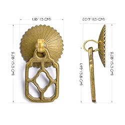 Set of 2: Total assembled measurement is 1.18"W x 2.08"H x 0.59"D (30mm x 53mm x 15mm) Flower Box Pulls: Pull measurement is 0.91"W x 1.49"H x 0.12"D (23mm x 38mm x 3mm) Brass Pull Accessories: Includes a set of radial washers inscribed with straight lines radiating from the center; Washer diameter measures 1.18" (30mm); Comes with a set of 1.6" (40mm) soft joining pins for installation Fit for Various Brass Hardware Projects: Ideal for architectural restoration, interior design, furniture projects, wooden cabinets, drawers, bureaus, armoires, and cupboards. Each piece features a hand-applied finish — subtle variations in color or texture may occur. Care Instructions: Wipe it quickly and lightly with a rag coated with soap and water or rubbing alcohol; Then, rub it with a light-colored oil such as olive oil; To remove some of the tarnish and make it shinier, use a thin coating of commercial brass polish; Coat a rag with brass polish and let it dry out for a few hours before polishing to ensure that you don't overpolish
