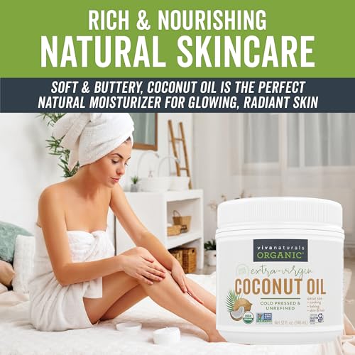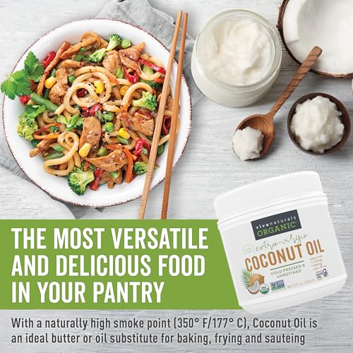 Viva Naturals Organic Coconut Oil, 32 fl oz – Unrefined, Cold-Pressed Extra Virgin Coconut Oil, USDA Organic & Non-GMO, Natural Cooking Oil, Hair Oil & Skin Oil