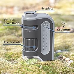 Carson MicroBrite Plus 60x-120x Accurate LED Lighted Pocket Microscope, Portable Educational STEM Toy, Mini Handheld Microscope for Student Science Lab (MM-300)