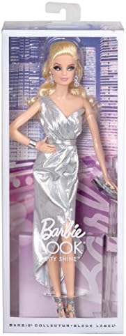 Barbie doll always has “The Look” to light up any room! The Barbie Look City Shine doll shines brightly in a dazzling red carpet look with platinum blonde hair and a dramatic silver metallic dress. Dressed to dazzle, her chic accessories include a necklace, earrings and heels. Other realistic details include her perfectly coiffed hairdo, rooted eyelashes and artfully applied makeup. Comes with doll stand and Certificate of Authenticity. Each sold separately, subject to availability. Colors and decorations may vary. Dolls cannot stand alone without stand or hold accessories as shown. For the adult collector.