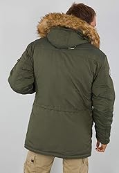 - Alpha Industries' Cold Weather Polar Jacket features a 2Tone Nylon upper, regular fit, embroidered patches, an L-shaped document pocket, and is made with 53% Nylon, 47% Polyester outer fabric, and 100% Nylon lining with 100% Polyester quilting. It also contains non-textile parts of animal origin.