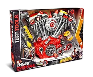- TUFF TOOLS: ENGINE OVERHAUL - 25 Pieces - Did someone say that it’s tool time? The Tuff Tools Light and Sound Engine Overhaul Toy Set will have your child feeling like a real motorcycle mechanic. This motorcycle engine can be easily disassembled and reassembled by your budding mechanic. Turn the crank to watch the pistons pump. Hear the engine rev up and watch the light glow. The set includes 25 pieces of parts, tools and accessories. This Engine Overhaul set will keep your child busy while helping them build their cognitive skills. Play right out of the box, batteries are included. This toy tool is designed for kids ages three years and up. Complete your tool kit with other Tuff Tools® toys and toy sets from Lanard®.