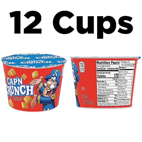 • Captain Crunch cereal in a convenient cup you can enjoy at home, at the office, or on-the-go. Includes 12 individual cups