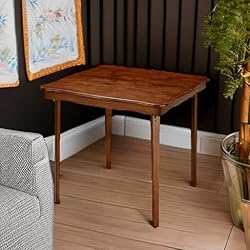 Stakmore Card Table: Distinctive scalloped edge of this folding table adds a touch of timeless elegance, making it a standout piece for any gathering Premium Solid Wood Construction: Crafted from top-tier solid wood, this table boasts exceptional durability and sturdiness, ensuring long-lasting use for years to come Versatile Functionality: Whether it's game night, a holiday dinner, or extra seating for unexpected guests, this table effortlessly transforms any space into a welcoming hub for entertainment and socializing Elegant Frame: Rich cherry-colored frame exudes warmth and sophistication, enhancing the beauty of any interior decor with its classic appeal Space-Saving Design: When not in use, simply fold this table away for compact storage, making it perfect for smaller spaces or for those who appreciate a clutter-free environment