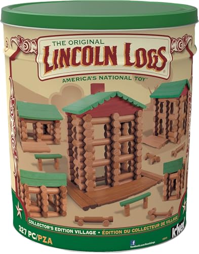 - HORAS DE DIVERSIÓN PARA NIÑOS – Lincoln Logs ofrece diversión duradera para los niños. Este conjunto permite a los niños construir una amplia gama de modelos de cabañas de troncos, gracias a sus hermosamente elaborados trozos de madera teñida real. Deje que los niños jueguen durante horas con este atractivo conjunto de Lincoln Logs.