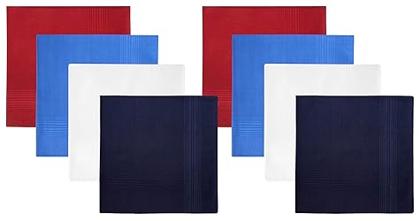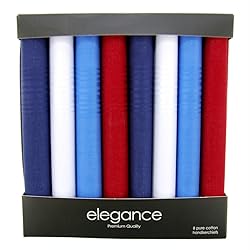 Retreez 8 Piece Pure Cotton Assorted Men's Handkerchiefs Hanky Gift Box Set Size: 16 inches x 16 inches / 40 cm x 40 cm 100% Pure Cotton, Excellent Quality Care Guide: Machine Washable, tumble dry.
