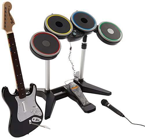 • Bundle includes the standard edition of Rock Band 4 for Xbox One, Wireless Fender Stratocaster Guitar, Wireless Drum Kit, and Stage-Grade USB Microphone.
