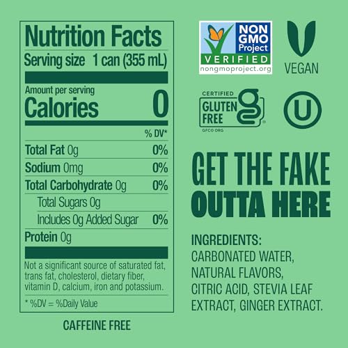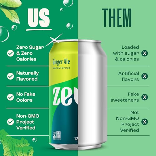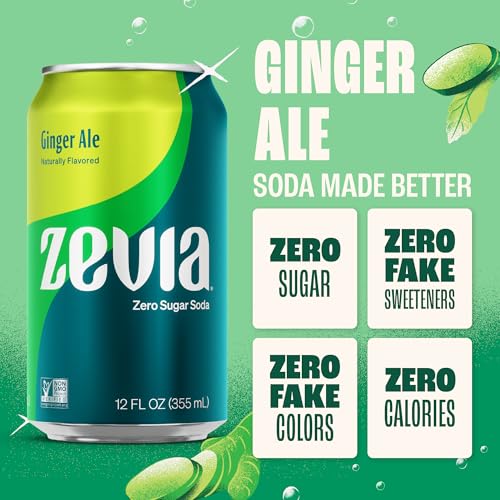 Zevia Zero Sugar Soda, Ginger Ale, 12 oz Cans (24-Pack) – Naturally Sweetened, Non-GMO Project Verified, Gluten-Free, Vegan