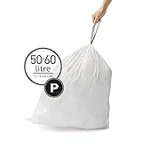 simplehuman Code P 60 Count, Dispenser Pack Custom Fit Liners, Drawstring Trash Bags, 50-60 Liter / 13-16 Gallon, White
