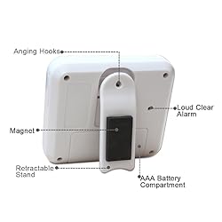 LOUD RINGING ALARM & MUTE MODE ----- You can easily hear this kitchen timer’s alarm in another room with loud beeping sound . No worry about overcook or undercook . If you don't like the alarm, you could switch the alarm to mute and there will be a red light flashing. COUNT UP/DOWN TIMER, MENORY FUNCTION ----- Not only for count down(Maximum to 99 hr 99 min 99 Sec), but also a count up timer (Maximum to 99 hr 59 min 59 Sec). The “START/STOP” button to recall the last time setting. If the timer is on but not working, it will turn off after 10 minutes, press any button to awake it. LARGE CLEAR DIGITS ----- Large LCD screen for timer digits display. LCD display size: 2.56 x 0.98 inches. This kitchen timer is simple for you to read the time and big digits let you see numbers clearly from any angles in the kitchen. MAGNETIC BACK, RETRACTABLE STAND AND HOOK FOR HANGING ----- The digital kitchen timer is convenient to place in three ways . Hang on the wall or place on the table. Especially it can stick to the front of the refrigerator with strong magnet. WIDELY APPLIED ----- Perfect timer for homework, exercise, gym workout, cooking (ie egg timer), sports, games and classroom timer activities.