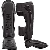 - Our Venum Elite shin guards are skillfully handmade in Thailand to provide our elite fighters with the best fighting equipment. Made with 100% Skintex leather, our elite standup shin guards’ combines comfort and great durability at an affordable price. Providing pro-anatomical reinforcement on the important key areas – shinbone and instep – delivers ultimate protection and optimal striking surface. The 2 large Velcro straps and the elastic bands placed under the foot and heel ensure you a secure custom fit.