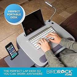 Sofia + Sam Multi Tasking Memory Foam Lap Desk with USB Light (Silver) | Supports Laptops Up to 15 Inches