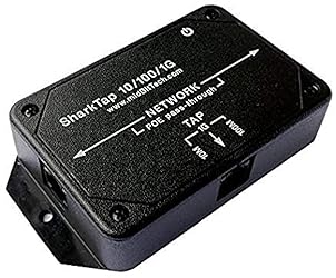 The SharkTap is a special purpose 10/100/1000Base-T ethernet device that allows you to 'tap into' an ethernet connection. It is intended to be used with the free Wireshark protocol analyzer or equivalent. Conventional switches route packets only to the intended destination port, reducing traffic but preventing a third port from seeing all packets. The SharkTap duplicates all packets to or from the Network ports to the TAP port. Supports 10, 100 and 1000Base-T, all ports. Power-Over-Ethernet (PoE) pass-through. Powered from a USB-B cable (included), draws 350mA or less. Other features: Auto-MDIX, so no crossover cables ever needed. Non-conductive enclosure for lab work. Will NOT route packets from TAP to Network ports. copper repeater technology ("carbon copy"). Byte accurate, 'zero delay', protocol agnostic