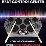 Pyle Pro Electronic Drum kit - Portable Electric Tabletop Drum Set Machine with Digital Panel, 7 Drum Pad, Hi-Hat / Kick Bass Pedal Controller USB AUX -Tom Toms, Hi-Hat, Snare Drums, Cymbals - PTED06