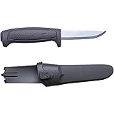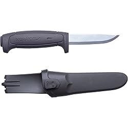 CRAFTSMAN'S KNIFE: Designed for craftsmen, this versatile knife with sheath is an excellent choice when you need a solid tool close at hand PREMIUM BLADE: 0.8 inch thick knife blade is made of carbon steel, which provides superior strength and stability with every cut; Carbon steel rusts, so wipe and oil the blade after use ERGONOMIC HANDLE: Ideal for working safely and efficiently in differing weather conditions year round, this outdoor knife features a large impact-resistant handle complete with a friction grip and a sturdy finger guard HARD PLASTIC COMBI-SHEATH: Features a practical belt clip and Morakniv Smart Button System which allows you to attach several knives to each other SPECIFICATIONS: Blade thickness: 0.08 in (0.2 cm), blade length: 3.6 in (91 cm), total length: 8.1 in (206 mm); net weight: 3.9 oz (110 g)