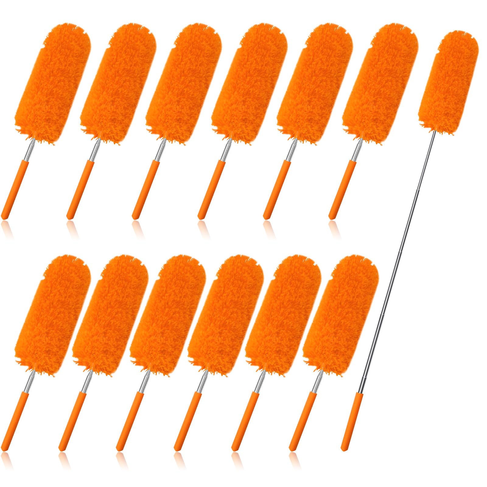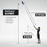 - The U.S. Duster Company presents a duster kit with an extendable pole handle and two different duster heads. The extendable pole is capable of reaching the tops of ceiling fans, the tops of tall furniture, and the blinds on high windows. You’ll even be able to reach cobwebs hanging from the ceiling. The pole is made from lightweight aluminum, and it consists of three sections. It weighs less than two pounds, making it extremely easy to lift. This is convenient when you need to lift the duster to clean high locations. Even though the aluminum pole is very lightweight, it’s also very sturdy, giving you excellent control as you clean those hard-to-reach areas. When the duster pole is collapsed, it is six feet long. When the pole is completely extended, it is 12 feet long. When you add your own height and arm length, you’ll be able to reach heights up to 20 feet. This kit includes two duster heads. The blue duster head uses microfibers to attract and hold on to dust particles and allergens. The yellow duster head uses nylon fibers and static electricity to attract dust like nothing else. Both of these duster heads are delicate enough to use on any and all surfaces from the floor to the ceiling, and they leave surfaces cleaner than feather dusters do. The duster heads are also bendable, making them great for dusting irregularly shaped objects. The duster heads screw onto the threaded end of the pole. This means that you can remove a duster head to clean it or to replace it with another attachment, provided that it’s the right size. When a duster head gets old and worn down, you can replace it with a new duster head. Alternatively, if you’re working on a painting project, you can replace the duster head with a paint roller. The included duster heads are easy to clean. You can shake them clean or gently wash them with warm water and a little bit of dish soap. Then rinse the dusters and allow them to air dry.