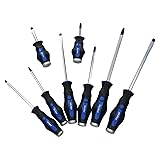 - Manufactured from chrome vanadium steel for strength and durability. Ergonomic grip handles for comfort and grip when using. The steel goes all the way through the screwdriver hence the name allowing for extra strength of the tool and prevention of it spinning in the handles. SET Includes; 1 x screwdriver flat bladed 6mm x 38mm (total length 115mm) 1 x screwdriver flat bladed 5mm x 100mm (total length 200mm) 1 x screwdriver flat bladed 6mm x 125mm (total length 240mm) 1 x screwdriver flat bladed 8mm x 150mm (total length 275mm) 1 x screwdriver Phillips PH2 x 38mm (total length 110mm) 1 x screwdriver Phillips PH1 x 75mm (total length 180mm) 1 x screwdriver Phillips PH2 x 100mm (total length 210mm) 1 x screwdriver Phillips PH3 x 150mm (total length 270mm) Comes in a plastic blow molded tray for easy storage and transportation. Professional tool for commercial or occasional use