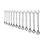 The 12-piece Full Polish Reversible Ratcheting Wrench set offers a variety of wrenches for any user need. These wrenches have 72 teeth for a 5 degree arc swing.