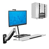 - Mount-It! sit-stand workstation wall mount is a complete workstation that saves space and promotes health. Move from sitting to standing in mere seconds with our easy-to-use gas spring arm system. To be more productive, focused and less stressed in this new working style. Features: - Detachable VESA plate makes the installation much easier by screwing into your monitors and then sliding back onto the arm. - Gas spring counterbalance floats the monitor with a light touch for a customized placement to match your viewing needs anytime. - Full-motion mechanism swivels, tilts and rotates the screen to optimize the freedom of different reading angles. - Micro level adjustment enables precision alignment of the keyboard configuration. - Built-in spring gauge can be adjusted to suit various monitor weight. - Built-in cable duct hides cables inside the arm for clean clutter-free look. - Foldable keyboard tray saves space when not in use. - Secondary storage tray offers ample accommodation for the cup, phones, notes, stationery, etc. - Ledge at the end of keyboard tray securely holds keyboard in place. - Additional CPU mount helps to hold the CPU on the wall to save more space for working area.