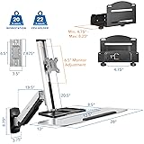 WALL MOUNT STANDING COMPUTER WORKSTATION - Full motion stand up workstation saves space and promotes healthy movement. Adjust height easily for various users or transition down to sitting. PLEASE NOTE THE MOUNT EXTENDS UP TO 41 INCHES FROM THE WALL. PLEASE ENSURE ADEQUATE SPACE IS AVAILABLE. ADJUSTABLE MONITOR WALL MOUNT WITH KEYBOARD TRAY - Complete system that mounts directly to stud and concrete walls. Comes with a single monitor mount, keyboard/mouse tray, and CPU holder. SIT TO STAND MONITOR ARM - Height Adjustable with the help of a gas spring counterbalance arm for easy up and down transition. Adjustable arm with 15 degree monitor tilt, 180 degree arm swivel, 360 degree monitor rotation. STANDING DESK MONITOR ARM MOUNT - VESA Mount 75x75 and 100x100 fits most monitor brands. Keyboard tray 26" wide to fit full size keyboard and mouse. Foldable keyboard tray saves space when not in use. BONUS FEATURES - Comes with a CPU wall mount, convenient storage tray and cable management function. CPU mount helps to hold the CPU on the wall to save more space for working area.