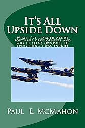 - #1 Hot New Release Award Winner This book provides true software development stories that may challenge long held thinking. It highlights 26 upside down principles along with upside down principle clarifying thoughts. At the end of each story you will find extended clarifying thoughts in the summary sections. I also highlight 18 coaching tips that can help you get your organization "right side up" with respect to performance. If you are wondering if a book that highlights coaching tips is for you, it is. I believe everyone in an organization should view themselves as a coach. In order to help coaches everywhere, in Part II I have framed the highlighted principles and coaching tips that have materialized from my stories within a framework I like to use called Essence. I find Essence to be a remarkably straightforward medium for communicating software development practices and fostering collaboration, even among non-technical stakeholders. If you have not heard of Essence yet, you have probably heard of the foundation from which it evolved, which I explain further in Part II. I explain in the introduction how Essence relates to my stories and coaching tips. If you choose to read Part II, I think you will agree that Essence is quite useful for capturing and describing these lessons, tips and best practices. Praise for It’s All Upside Down… “While reviewing this book, 99% of the time my feedback was either “this is exactly what I advise my clients” or “this is even better than what I’ve been advising”. This book is full of pragmatic, insightful advice from the software process improvement trenches. Thanks Paul!” Scott Ambler Co-author of Disciplined Agile Delivery “Sometimes we’re so heads-down focused on following a process or a so-called best practice, we don’t stop to ask if it really makes sense. It’s easy to forget that process maturity depends upon such organizational introspection. ‘It’s All Upside Down’ challenges the reader to do just that. Reading this book is, well, exactly like having a coffee with a coach and bona fide subject matter expert on the practical matters of software development. Paul’s conversational style makes for a comfortable read which you can tackle cover to cover or simply a story or tip at a time – and then reflect on how it informs you with respect to the challenges you confront in your own projects, helping you essentially stand on your head and see a perspective you couldn’t see before – because it’s all upside down.” Michael Callihan President, AEGIS.net ”… Paul gives the reader the right amount of information, at the right time, following a story-telling narrative. Very nice and super informative. I just experienced several months of consulting in 3 hours from the comfort of my chair.” John Ryskowski President, JFR Consulting, CMMI High Maturity Lead Appraiser Paul McMahon’s latest book, “It’s All Upside Down”, expresses in words a thought that has been tickling the back of my mind for years; how we traditionally approach development has been acceptable, but there is a better way in many cases on how to practically proceed. Paul nails it with real world scenarios and solutions such that all readers may benefit from. Jim Convery, The Ascendancy Group, Former Director CMMIDEV and CMMI-SVC Maturity Level 3 Organization “There are few things as useful as a variety of perspectives on any given topic. This book does an outstanding job of showing non-traditional perspectives in areas where “herd thinking” and attitudes have excessively narrowed viewpoints. Supported by personal, highly interesting, true stories, the rationale for each of the “upside down” concepts is made clear, and recommendations are made for practical alternative thinking and action.” Richard Bechtold, PhD, President, Abridge Tech