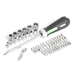 Comprehensive Socket Set: Mechanic tools include 64 pieces with deep and shallow 6-point socket sets, a ratchet, extensions, and universal joint, ideal mechanic socket set for tackling various automotive tasks with precision. Hard Chrome Finish: Tool sets feature an easy-to-clean smooth satin finish that resists rust and fingerprints, ensuring your socket and wrench set stay in top condition for years. No-Slip Socket Design: Posi-Grip No-Slip design with off-corner loading increases torque and socket-to-fastener contact, preventing rounding and enhancing job efficiency. A great tool set for car maintenance. Organized EVA Tray: Mechanics tool set comes in a custom hi-vis green EVA tray with etched size markings, making it simple to identify missing tools and maintain a well-organized workspace. Versatile Ratcheting Screwdriver: Equipped with a 1/4" square drive, 6" extension bar, and 28 bits, this tool kits perfect for accessing tight spaces and handling a wide range of fasteners.