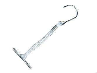 KNOTTED AND METAL CLAMPED. HARDENED STEEL HOOK. SUPER STRENGTH 5" WEBBED CORD. LARGE PATTERN HOOK FOR 1-1/2" PIPE.
