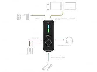 CREATE HIGH-QUALITY DIGITAL MUSIC PROJECTS: The perfect combination of performance and value, this iPhone audio interface provides 24-bit/96 kHz audio quality for performance, recording, and production. COMPLETE RECORDING PACKAGE: A XLR and Hi-Z combo input lets you connect your favorite instrument or mic, with +48v phantom power for condenser microphones, and MIDI In/Out to connect controllers, keyboards and more. DIRECT MONITOR WITH YOUR HEADPHONES: Connect your earbuds directly to the headphone jack to monitor your sound in real-time, with no latency or echo. Ensure you always sound your best. COMPATIBLE WITH: An iPhone interface, iPad interface, and USB audio interface all in one, with Lightning, USB-C and USB-A cables included right in the box. WORKS GREAT WITH YOUR FAVORITE APPS: This iOS interface is built for audio professionals and delivers studio-quality sound on almost any device and any app like Clubhouse, Instagram, Zoom, etc.