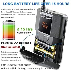 ✤【492FT LONG TRANSMISSION DISTANCE】EXMAX EX-938 UHF wireless voice acoustic audio transmission system could transmit the voice of who speaks to the microphone of transmitter to the people who wear earphone of the receivers,transmission distance is about 492 feet/150 meters.This EX-938 translation equipment helps tour groups/speakers/lecturers/minister overcome background noise and keep social distancing, can hear clear even when there is loud music. ✤【11 SELECT-ABLE UHF CHANNELS ALL MULTIGROUP WORKING】11 select-able UHF Channels allow at least 5 groups working simultaneously on different channel ID without mutual interference.Each group uses unique Channel ID and different groups uses different Channel ID.One EX-938T transmitter could pair with many many EX-938R receivers within working distance so long as they are on the same Channel ID. PLL frequency synthesized technology ensures stable and reliable voice transmission performance. ✤【EASY OPERATION】AA batteries as power supply,low power consumption design for long working time over 15 hrs,easy operation on battery replacement,no built-in battery makes it conveniently to be taken on flight.EX-938T transmitter has two input jacks, AUX and MIC,AUX is for external audio input, such as music playing from CD or MP3/MP4 player;MIC is for real-time human voice inputting,such as teaching,training, touring,speaking etc.Please don’t mix up the two jacks,otherwise you will get noise. ✤【SOCIAL DISTANCING SOLUTIONS】EX-938 wireless audio voice transmission system makes you heard clearly even 328 feet/100 meters away, giving remote instructions, remaining out of congregate settings, avoiding mass gatherings, and maintaining social distance (at least 6 feet/2 meters) from others when possible. Return to work with confidence. Independent Mechanical Channel adjusting button,just press +/- to increase or decrease Channel ID,no need to pair or sync. UHF stable wireless transmission. ✤【VARIOUS APPLICATIONS】With overcoming noise and distance issues and making sure your message is heard clearly, EXMAX EX-938 is widely used as simultaneous interpretation system,Church Translation system,audio tour guide system,social distancing solutions,assisted listening system,wireless audio voice transmission system, interpretation headsets devices. Note: This system requires a human language interpreter, it does not translate automatically.If you have any problem please contact us.