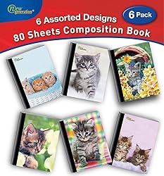 New Generation – Kitten - Composition Notebooks, 80 Sheets / 160 Pages Wide Ruled pages Comp Book, Durable Laminated covers with Assorted Fashion Cats Designs, 6 Pack Notebooks
