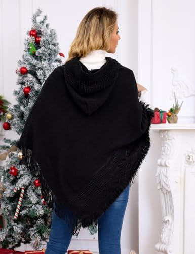 Ferand Ladies' Hooded Cape with Fringed Hem, Crochet Poncho Knitting Patterns for Women