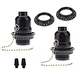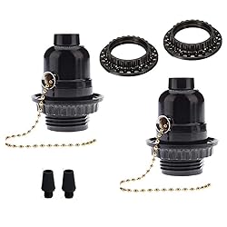Good quality: The E26 Medium Base is made of high-quality bakelite and plastic. Rated for up to 110-220V; UL listed; Color: Black; Style: pull chain. Meet more needs: with 2 pcs light socket ring can meet more open lampshade. Application: Replaces old or broken socket on your light and fan fixtures or Diy what your project. Easty to install: with brass and silver screws for black and white wire connection,then screw-in lamp sockets finish.