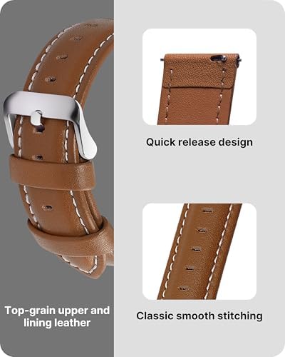 12 Colors for Quick Release Leather Watch Band, Fullmosa Axus Genuine Leather Watch Strap,Brown,22mm