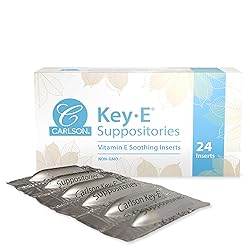 RESTORE LUBRICATION - Carlson Key-E Suppositories help restore lubrication in sensitive areas gently and effectively. VITAMIN E - Each Carlson Key-E Suppository insert contains 30 IU of vitamin E to help soothe and heal sensitive, dry areas. VAGINAL OR RECTAL USE - Key-E Suppositories can be used vaginally for women unwilling or unable to use estrogen, or rectally for relief from occasional constipation. Key-E Suppositories - 30 IU of vitamin E per insert E-Gem Oil Drops - 20,000 IU of vitamin E per bottle Key-E Suppositories - Not tested on animals E-Gem Oil Drops - No artificial dyes or scents