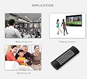【PLUG AND PLAY】MX3 air mouse remote with mini wireless keyboard is connected by a stable powerful 2.4GHz RF technology, just plug USB receiver,the transmission distance can up to 10 meters/ 394 inch(may be less than 10m depending on the environment). 【2-in-1 MULTIFUNCTIONAL REMOTE】Mini wireless keyboard and 6 Axis gyration motion system:only have 38 keys button,but can enter all characters in one. Press "Alt" to switch to punctuation or letters characters. 3-Gyro + 3-G Sensor allows mouse to be controlled accurately for motion sensing game. 【BACKLIGHT AND IR LEARNING】LED Backlight Double-faced design, easy to type in dark and input the correct information accurately. Five programmable IR learning keys, you can learn and control some common functions of your TV with this remote. 【STRONG COMPATIBILITY】Support system Windows/Android/Mac OS/Linux, Applicable to: Android TV Box/Mini PC/Smart TV/Projector/HTPC/All-in-one PC/TV. (“ATTENTION” - NOT compatible with Most Samsung,Sony,LG,TCL,Roku,Smart TV). 【BUY RISK-FREE】Unconditional 30days Money Back and Lifetime After Sales Service. Please do not hesitate to contact us if you are not satisfied with our air mouse remote control. Your well purchasing experience is the aim for us pursuing to(The product does not include 2xAAA batteries).