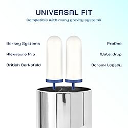 - Experience the ultimate solution for clean and crisp drinking water with the Coldstream FTO+ Ceramic Gravity Water Filter. This advanced filtration system is designed to remove most contaminants, including lead, fluoride, and microplastics, ensuring that your water is safe and pure. Featuring a user-friendly design, the FTO+ is effortless to install in your compatible stainless steel or plastic gravity systems. The water passes through a specially formulated ceramic outer layer and granular activated carbon, effectively removing chemical contaminants and enhancing the taste of your water. Enjoy clean, healthy, and great-tasting drinking water with ease. The FTO+ is fully compatible with popular gravity water filter systems such as all sizes of Berkey Water Filter housings, British Berkefeld Gravity Systems, Waterdrop Filter System, Purewell Gravity Systems, FACHIOO Water Filters, Icepure FIlters, Virego Water Filters as well as the ProOne and Water Filter systems. Designed as a seamless Berkey water filter replacement, the FTO+ offers a user-friendly experience with simple installation. An unmatched level of testing, eco-friendly design, and certified high performance. No priming or red dye testing required, unlike Berkey filters. Made in the UK with a reputation for excellence since 2013. Is compatible with the following water filter systems from Berkey, Doulton, Boroux and Nazava. Compatible with the following models: Crown Berkey, Imperial Berkey, Royal Berkey, Berkey Light, Big Berkey, Travel berkey water filter British Berkefeld 8.5L, British Berkefeld 6L, British Berkefeld 12L, Nazava Water filters And many more...