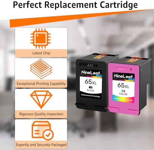 NineLeaf 65XL Black and Color Combo Pack Compatible for HP 65 XL Ink Cartridge N9K04AN DeskJet 3755 3720 3722 3723 3730 3732 3752 3758 All-in-one Printer (1 Black 1 Tri-Color,2 Pack)