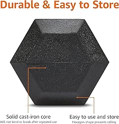 - Amazon Basics Rubber Encased Exercise & Fitness Hex Dumbbell, Hand Weight for Strength Training, 15 lbs, Black
